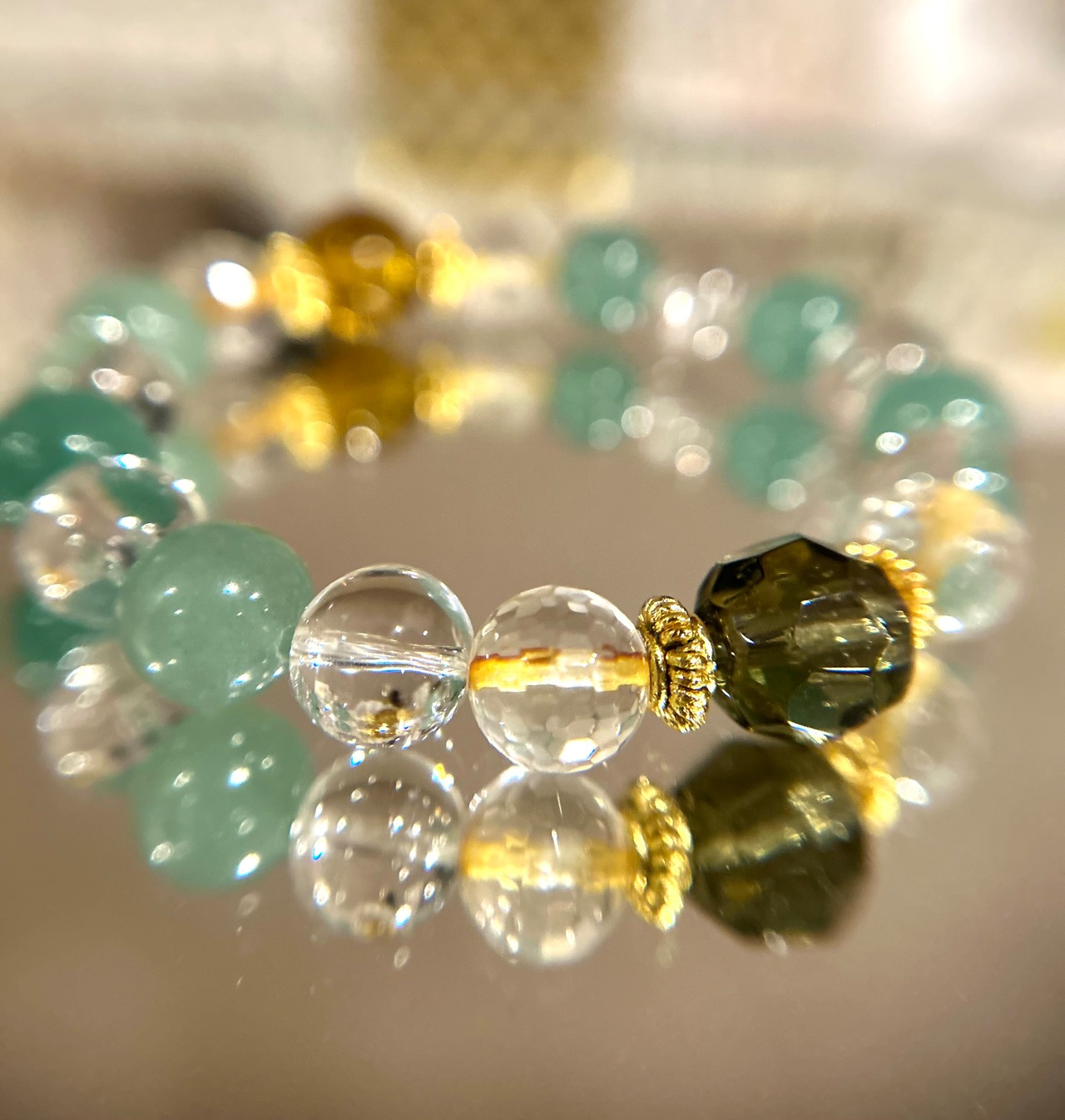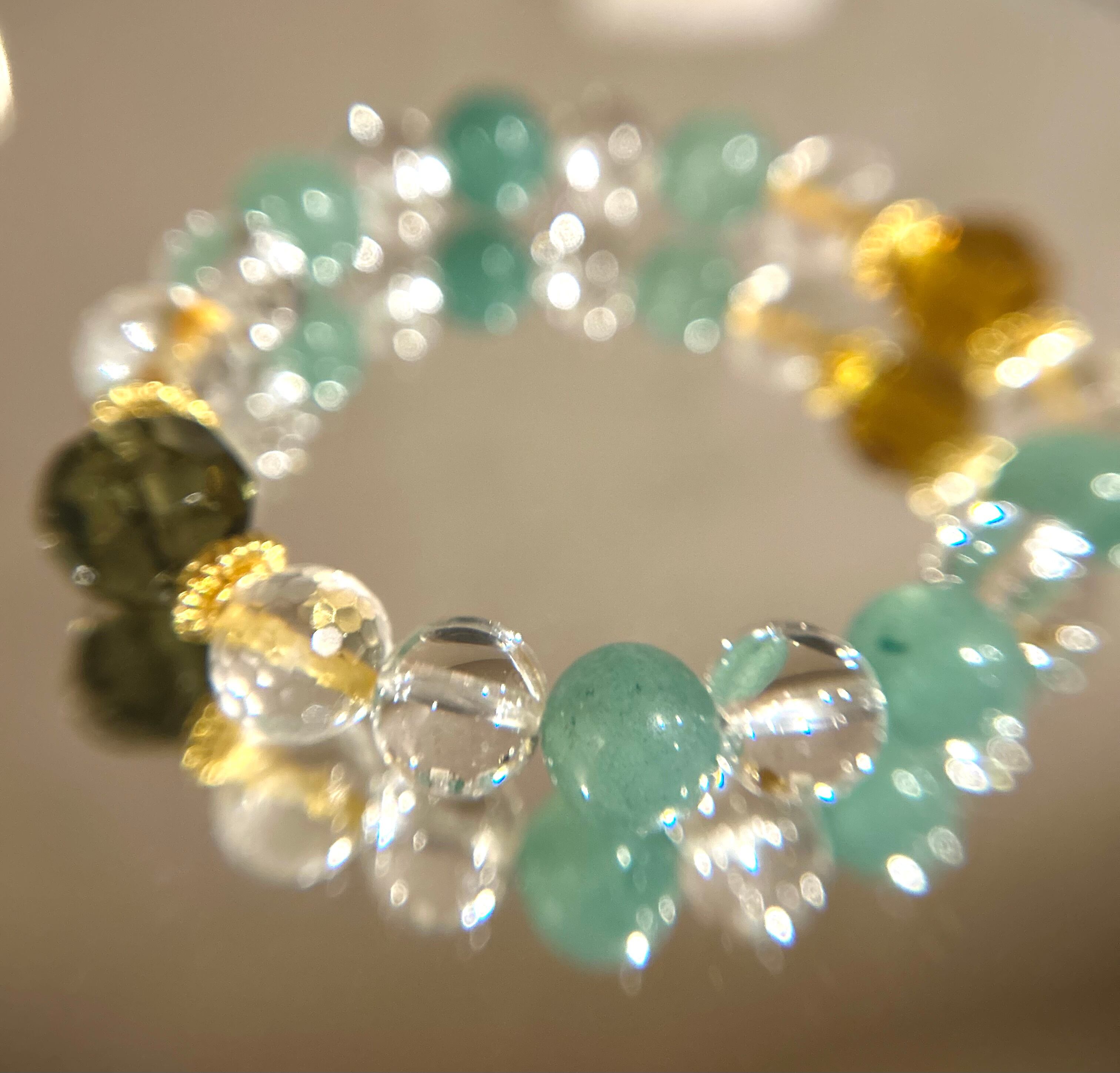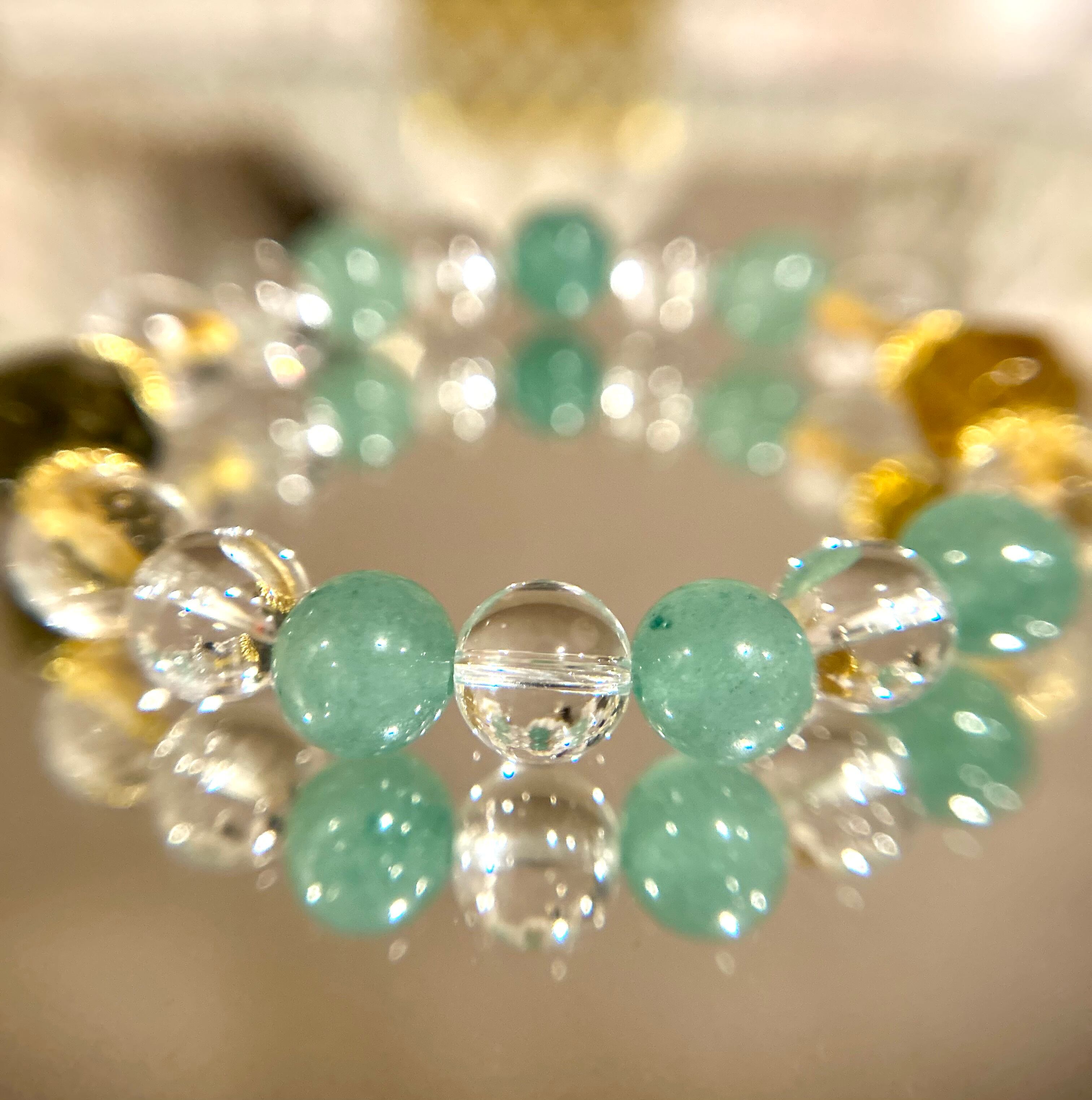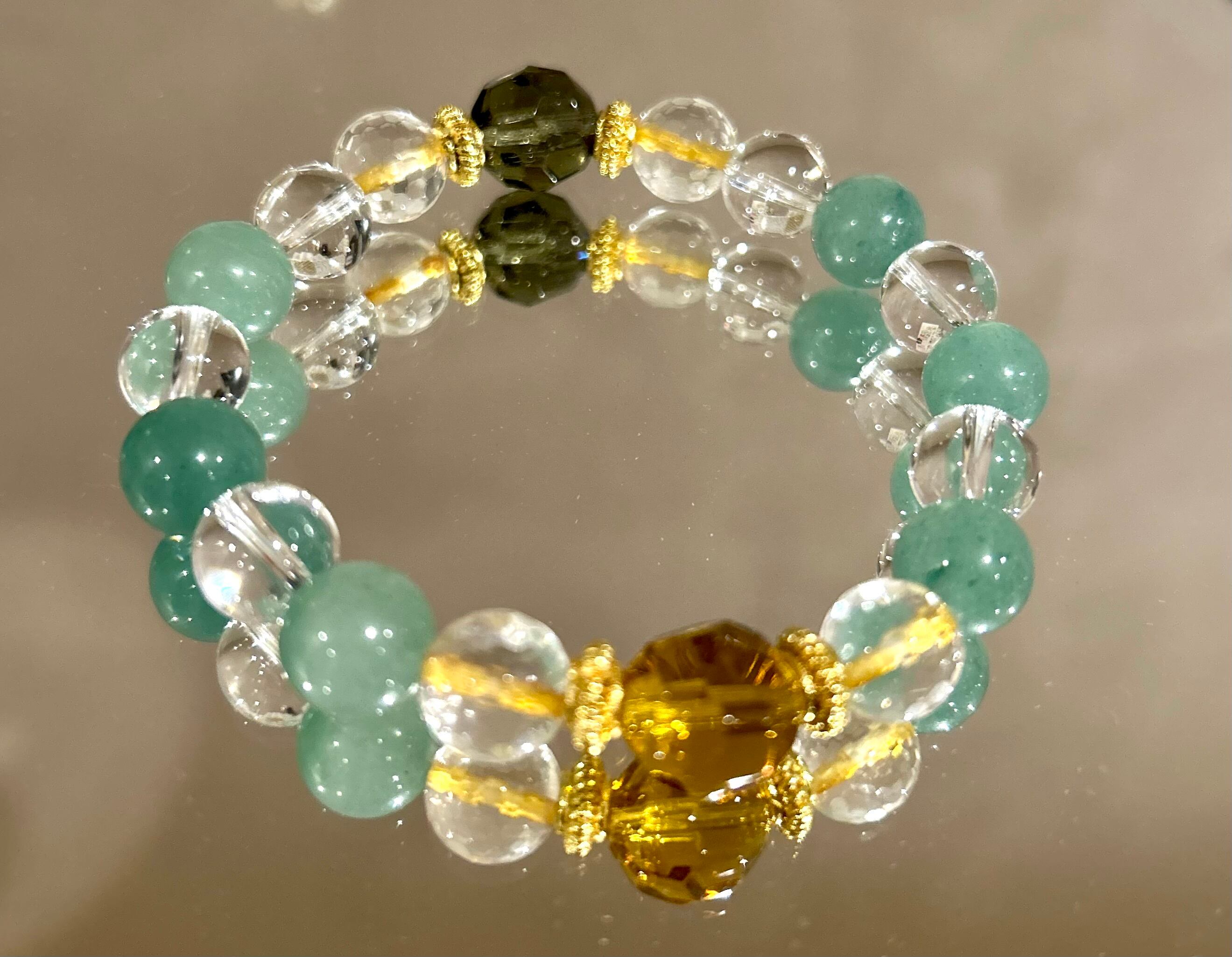 グリーンアベンチュリンが、自分が自分のリーダーになる資質を促し、貴方に指導力をもたらします。心に隠し持つストレスの根本原因を解決させ、本当の問題の解消を促します。また、繁栄をもたらすポジティブな石であり、デーヴァの王国(自然界)と結びつきます。電磁スモッグ・電磁波からも守ります。思いやり、共感、忍耐力をつけます。心を安定させながら創造性をもたらし知性と情緒を結び付けます。怒りを鎮め、二極のバランスをとり心の再生を促します。
