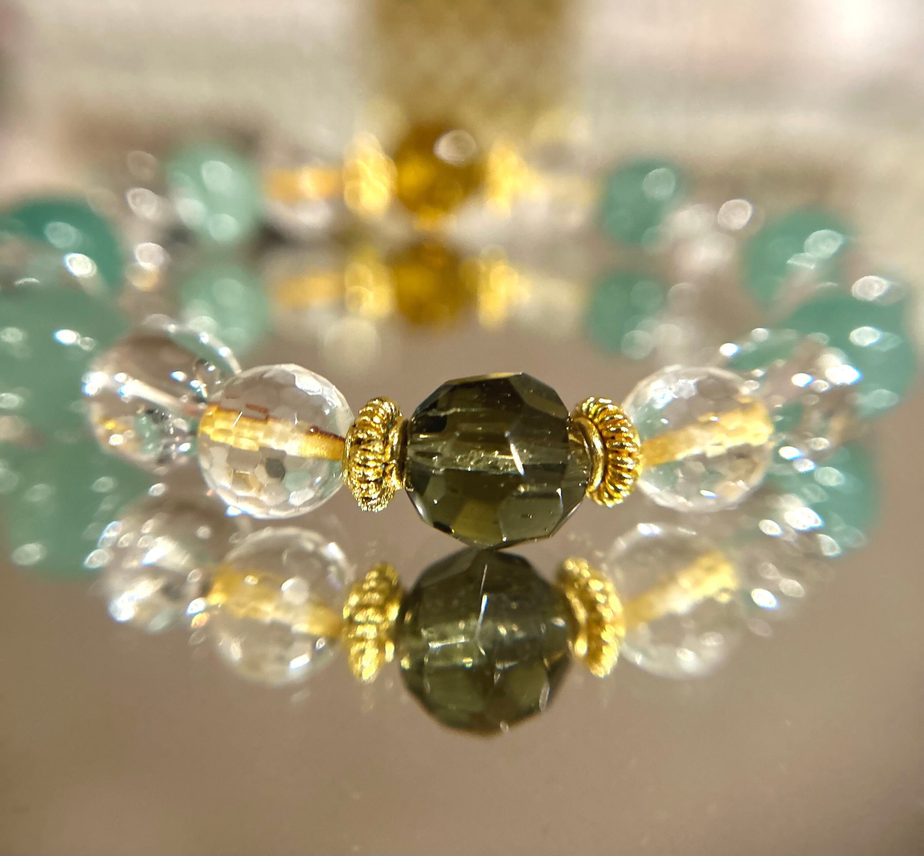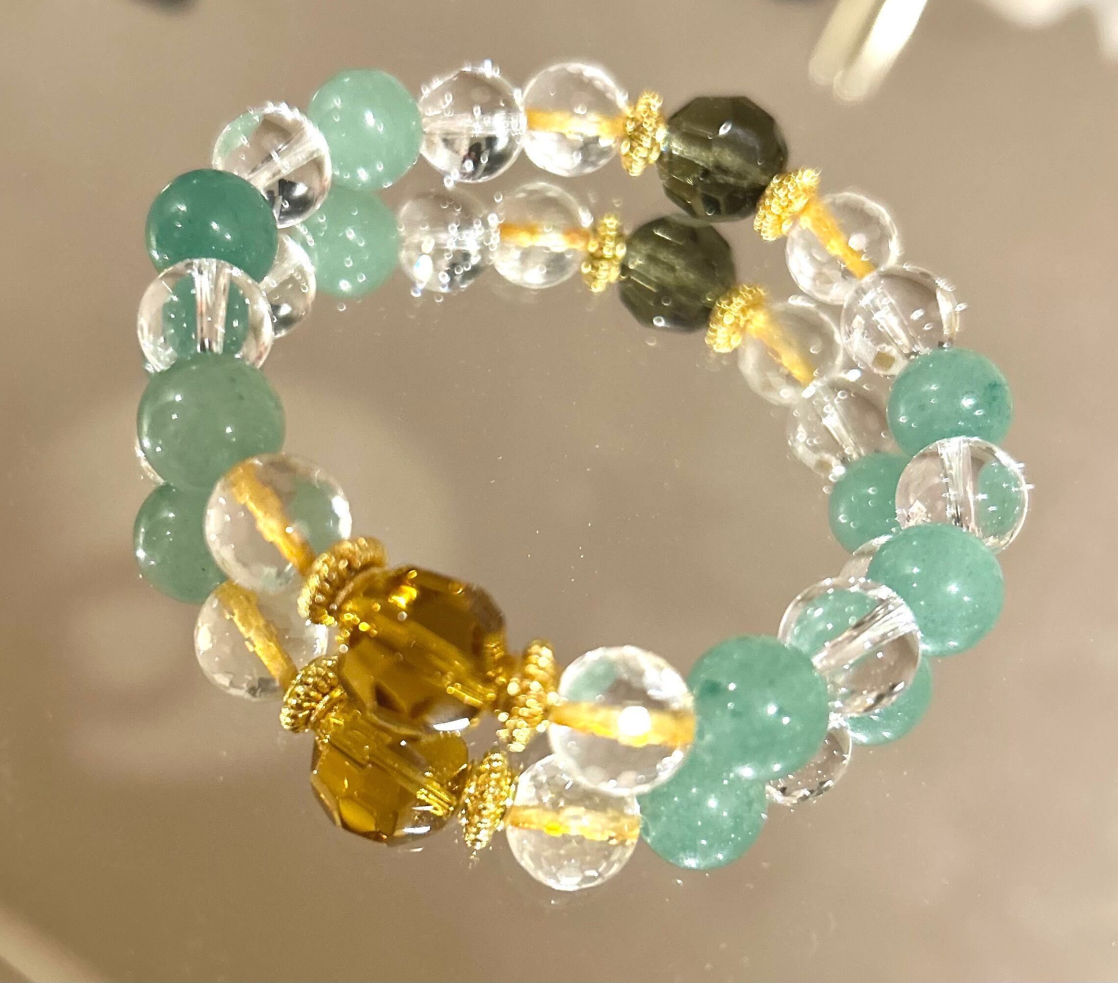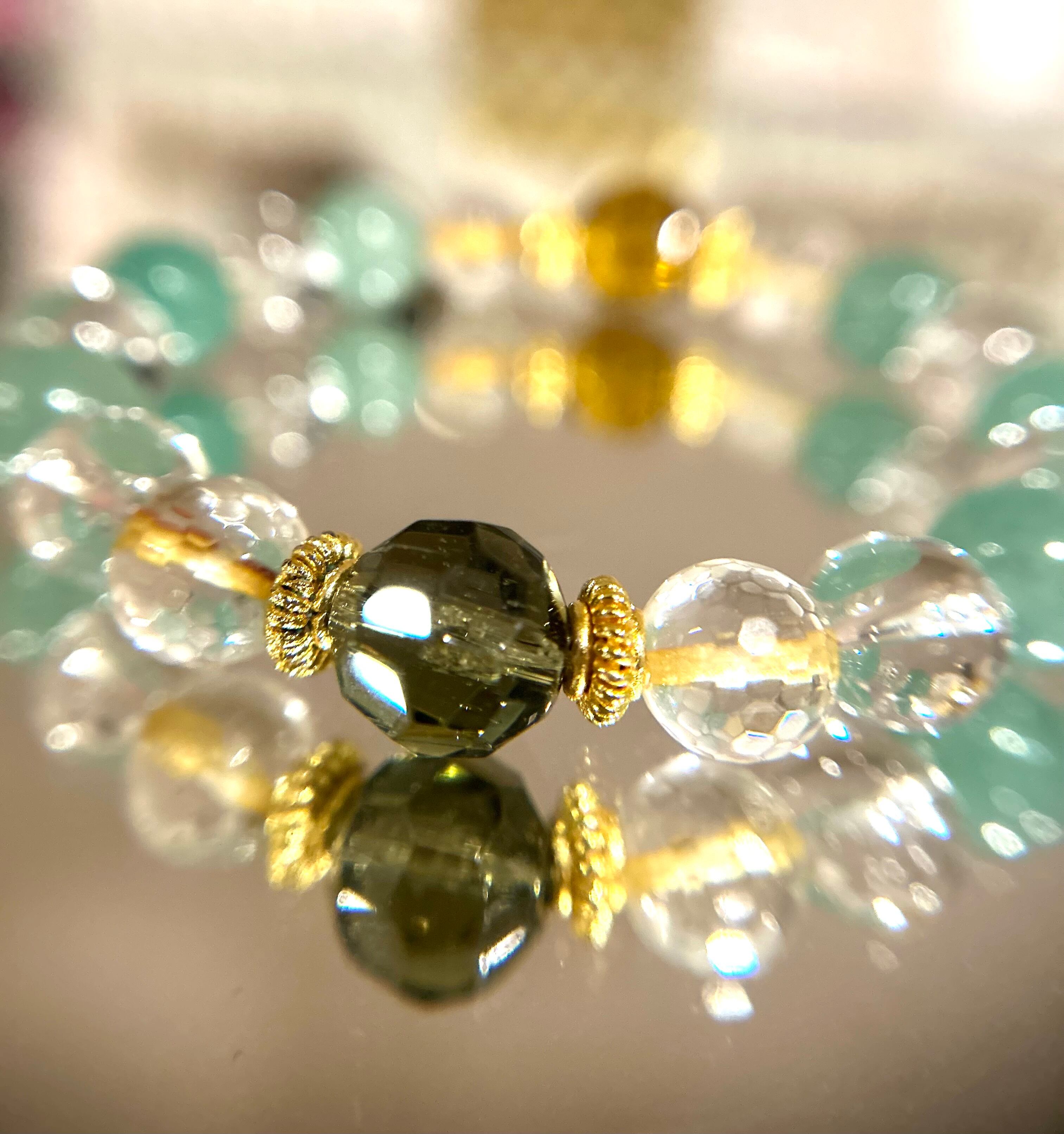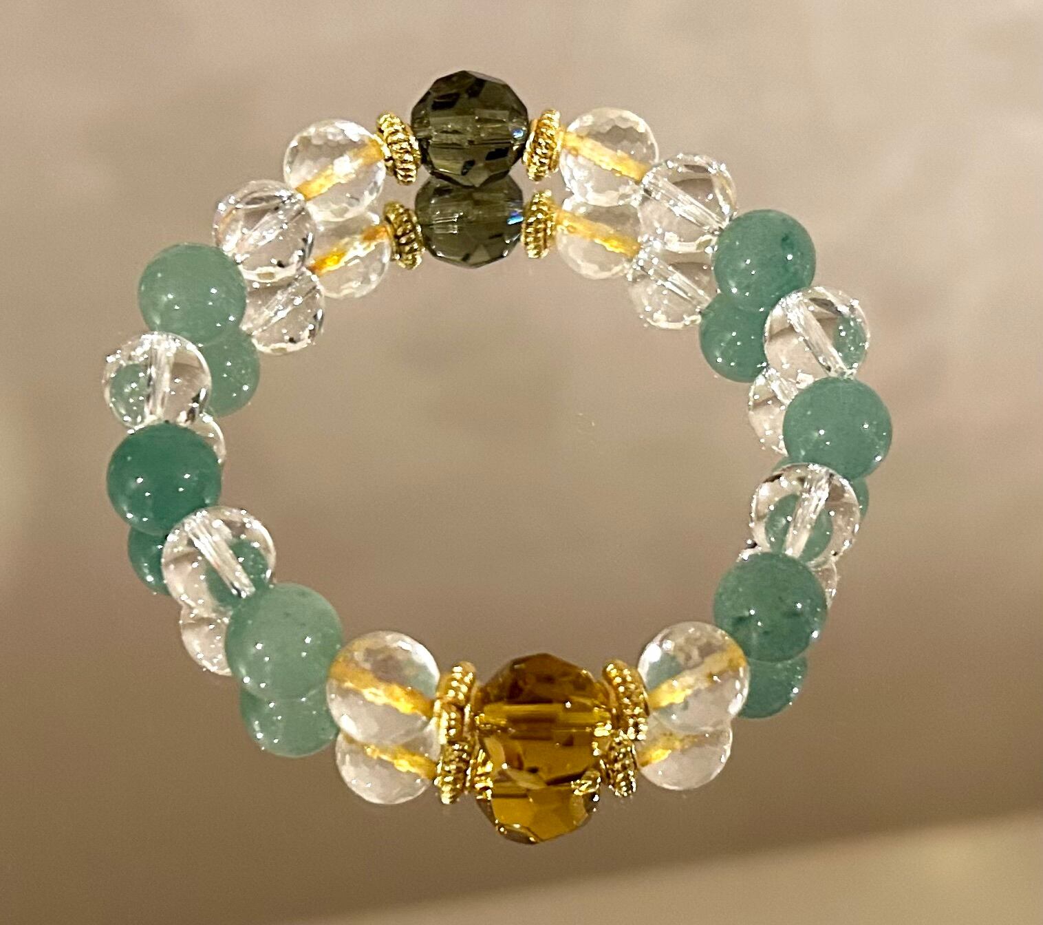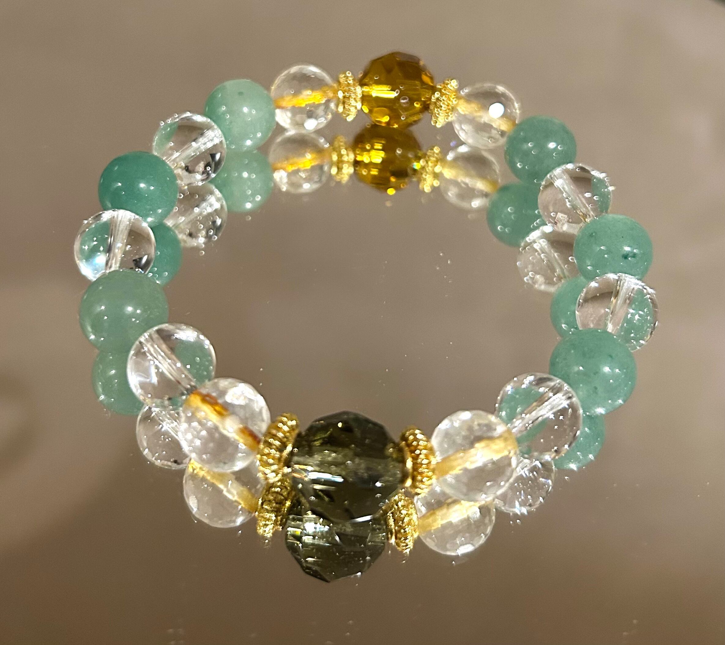グリーンアベンチュリンが、自分が自分のリーダーになる資質を促し、貴方に指導力をもたらします。心に隠し持つストレスの根本原因を解決させ、本当の問題の解消を促します。また、繁栄をもたらすポジティブな石であり、デーヴァの王国(自然界)と結びつきます。電磁スモッグ・電磁波からも守ります。思いやり、共感、忍耐力をつけます。心を安定させながら創造性をもたらし知性と情緒を結び付けます。怒りを鎮め、二極のバランスをとり心の再生を促します。