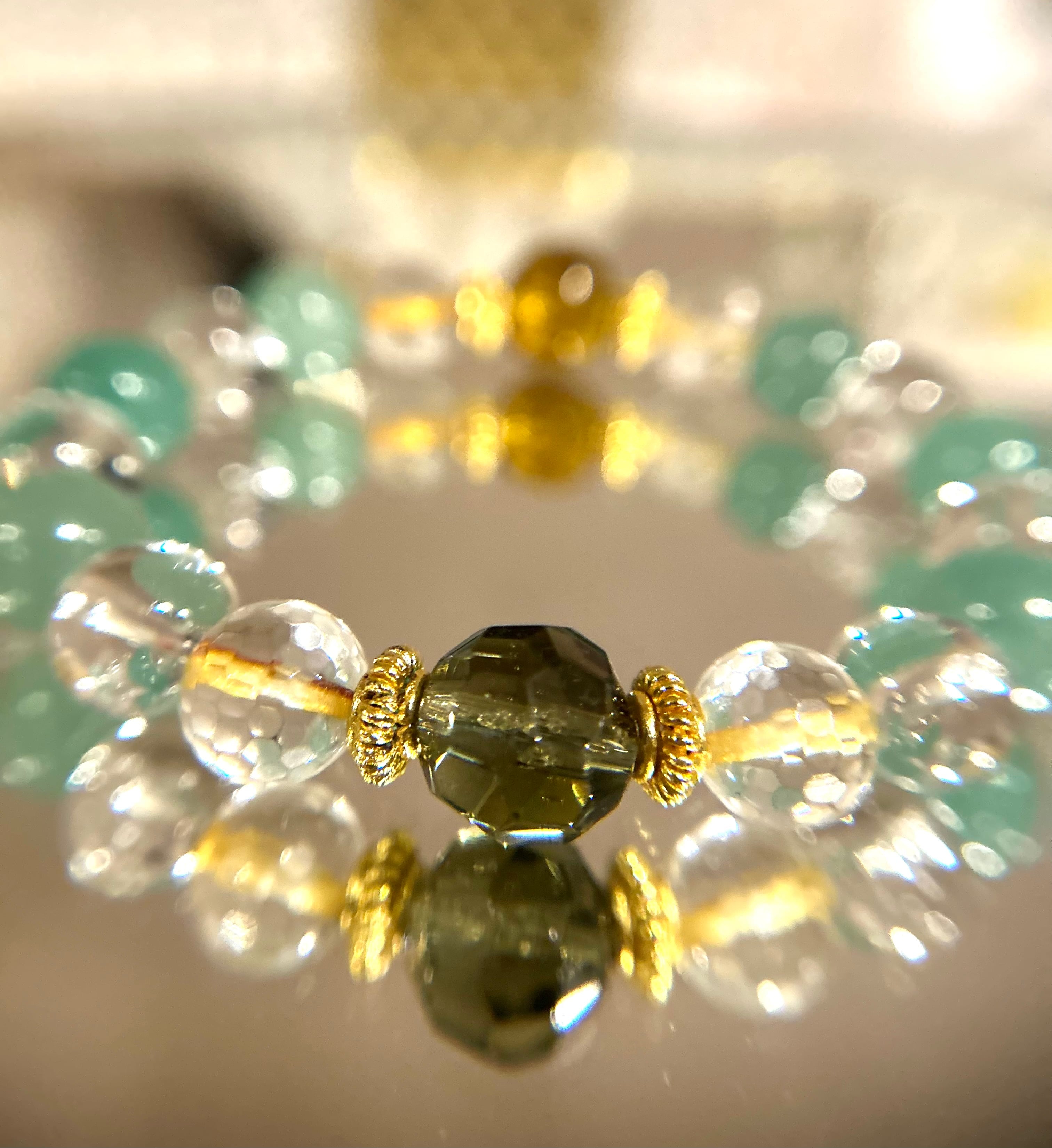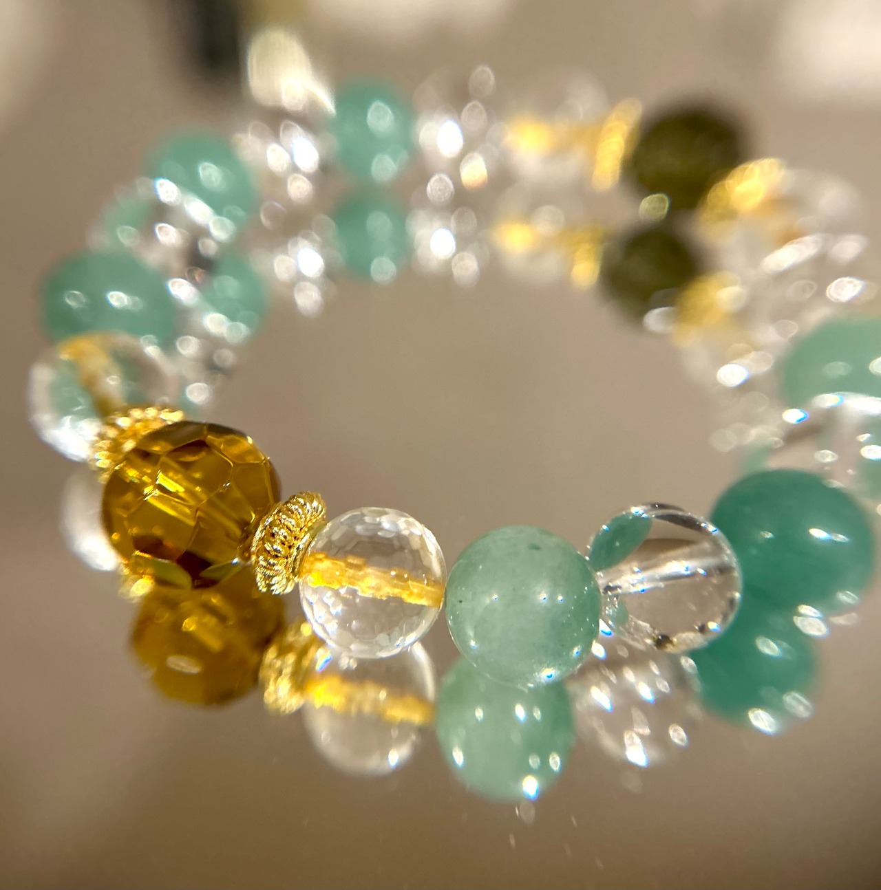 またシトリンが貴方に明るさと喜びをもたらし、スモーキークォーツが、しっかりとしたグラウンディングを助け、着実に歩むことと豊かさを結び付けます。
